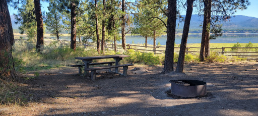 There are pit pots, but no water or power. The picnic table is in bad shape, but it has a nice fire pit.
