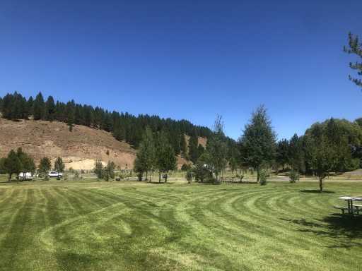 We stayed here for a weekday night in August and, except for a couple of long-term parked RVs with no one there, we were the ONLY campers in the park. It’s nice and well-kept, clean areas, picnic shelter for day use, and informational signs. A mile off of Hwy 26, it’s quiet with few cars going by; however, during logging season, log trucks go by every few minutes in the early morning hours. The only other sounds were cows mooing on the nearby hills. No hookups—but potable water available. No AT&T cell service.