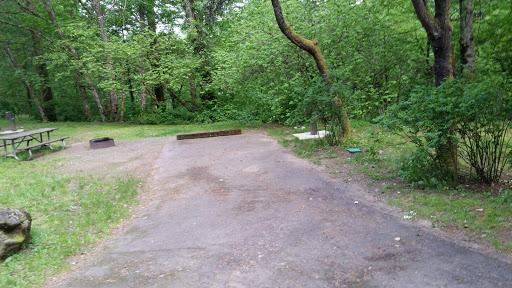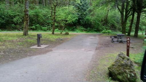This is a pretty campground with lots of trees and very accessible to I-84. There are sites for all types of campers, from pull-through ones for large motor homes, to small back-in only ones for small trailers like mine, to walk-in and bike-in ones for tenters. Close bathrooms are clean and spacious.