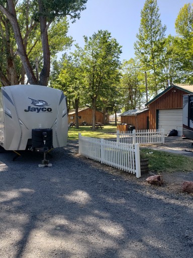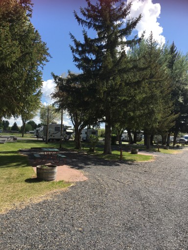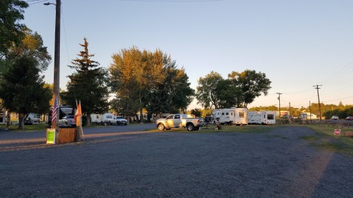 We stayed only one night at this park and it's very nice. It's right off Hwy 20 but the road noise traffic is surprisingly low! Not too many trucks. The sites are generously spaced apart and the grounds are well maintained. The owners are very nice as well. It's just outside of town and can accommodate both large and small rigs with pull-through and back in sites. They have a laundry facilities, showers and a nice little store for goodies and Ice. They're pet friendly too with a nice big place out back to take your dog. Some sites are shaded, some are not. We will definitely consider this place again in any future travels that way.