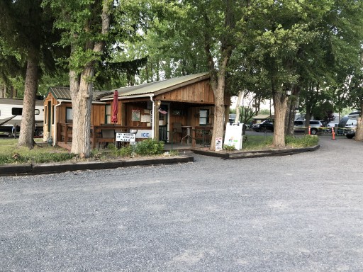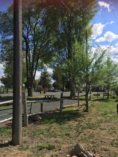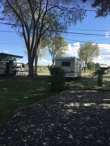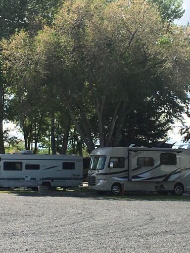Located right on the Hwy, there was non stop, traffic noise and a lot of semi’s. The park has a beautiful grassy side with nice large sites. Then there’s another side, where we were put. All dirt and rocks with tight spaces. There was a partial wood fence about two feet from our front door, which made it a tight squeeze. The laundry room is filthy and the prices of items in their little store are crazy high. This is great for a one night stop, but we will never stay longer than that again.