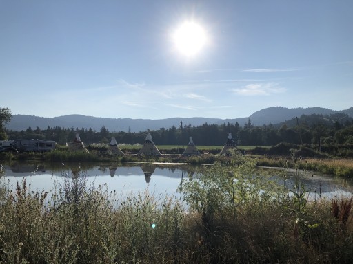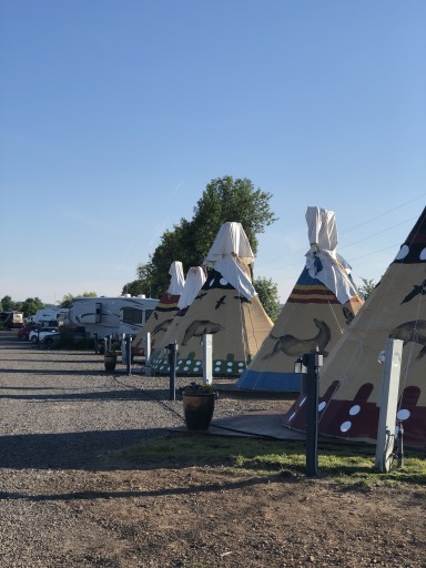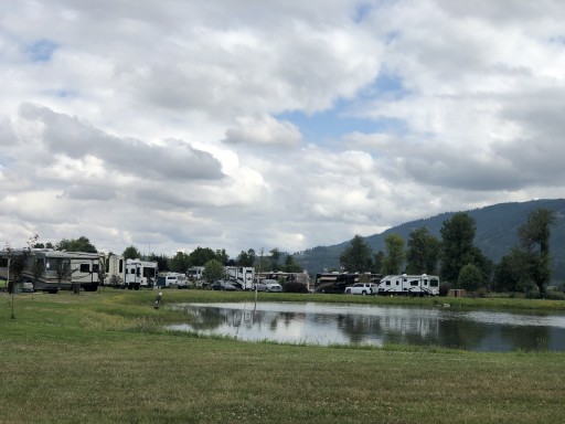 A large spot, level and you’re being escorted to your site. Upon arrival, we received a treat for the cat as well as mints for us. Clean bathroom and Showers. We did not used the Laundry but seemed nice. We loved the RV washing spot. Large ponds for those who like it. Close to Highway and Eugene. Would recommend it !