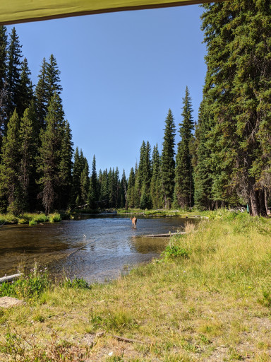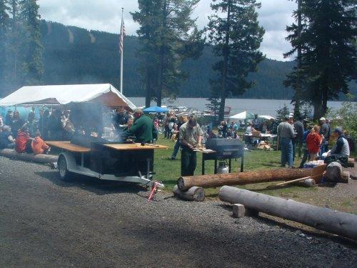 My hubby & I were totally disappointed with our stay...the porta pottys were dirty, no toilet paper (I assume the hikers take it) the bathrooms by the storefront were a mess...looked like the hikers 'birdbath' in them...shampoo & soapbottles left on the ground...water all over the floors..thankfully we had our rv...no sewer hookups & they claim there is water within 100 ft of all sites...maybe but the hose doesn't reach the sites to fill our tanks...they also charge $15 for guests to dump tanks..oh & showers cost $2 for a 3 min shower.. we could not sit and enjoy the views of the lake in front of the store & restaurant because all the tables were taken by the hikers. We paid $200 to park our rv for 4 nights but could not enjoy the park...