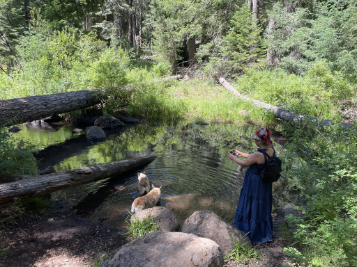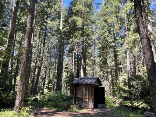 We like it here. Shady. 5 campsites. There is a clean spot on the creek to wade and cool off in this year! Only 8 bucks. Bring your own drinking water. Vault toilet. A little hidden gem! ๐