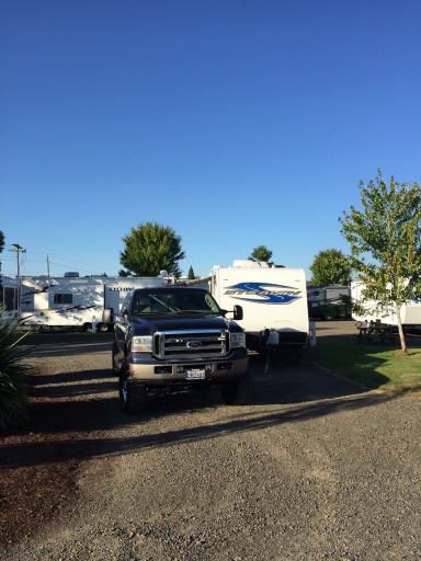 The only place for an RV is in the parking lot. Presently only open on weekends.