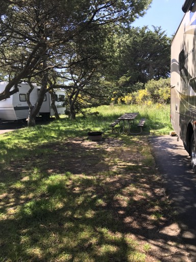Sites are within walking and hearing distance of the ocean waves. Sites are close but there are trees in between for some privacy. Great biking and walking paths. Small airport in the park and we saw a herd of about 20 elk grazing on it during an early October afternoon. Deer in the park that are tame and will eat out of your hand as we saw other campers doing it. Hosts were helpful and the park was very clean. A great place for families. Great beach area.