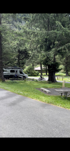 My husband and I have camped here in a tent on numerous occasions. There is group tent camping available and many pull-thru sites for the larger RV’s. Large grassy area to play outdoor games like frisbee and there are numerous spots. Park closer to the entrance and the road noise is not noticeable. The secret to this campground is that most people don’t realize that even though the camp is on the east side of the road - there is beach access that is very easy to use. If you like the ocean, trees, quiet and a great campground you will not be disappointed. Looking forward to returning this year with our new 24’ RV.