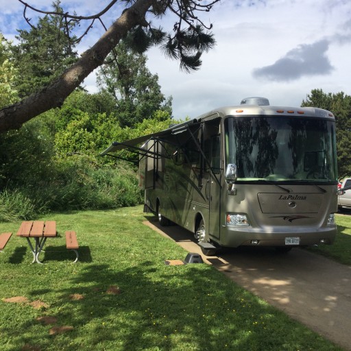 Super spot ( 43' 5th wheel) with pull thru and room to spare. Excellent laundry , washrooms and showers all very clean and nicely decorated . We enjoyed our 7 night stay, everything was close by with easy access. We'll spaced sites . Good WiFi