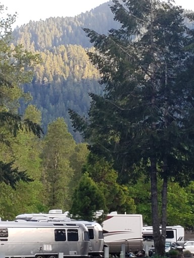 Sort of hard to find as it is not marked well off of Hwy 58. Your first impression coming in is wow, what did we do as you come in through a trailer park. Apparently, this place used to be called Casey’s Mobile Home Park. Once last that, you are in the RV park. Rates are reasonable and the park is well kept with people working daily mowing, watering, cleaning, etc. All spaces are paved, with some patches of grass, a picnic table and hookups. Spaces are tight, but sites are long. There are pull through and back in sites facing the river. We booked for 4 days, not knowing the area and planning to do some fly fishing in the river. Did not happen as temps were 95 - 99 degrees and they had a box elder bug infestation happening. This is a yearly event there that we did not know about. We did not see much if anything to do there, the town if Oakridge has some small dog not too clean looking places to eat that we skipped. Leaving early - no refunds, no apologies. Doubt we’ll be back.