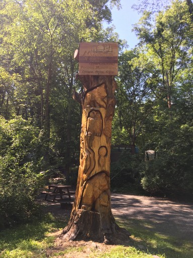 We stayed 3 nights. The camp is immaculate, sites are nice size and very well maintained. All sites are partially wooded so you have semi privacy. The swimming pool is the nicest I have seen at a campground. They also cater to folks with dogs, huge dog park and poop cleanup stations all over. Checkout the 60+ wood carvings around camp.