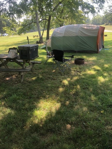 We stayed in a tent for a Friday to Sunday. The bathrooms are centrally located but are dirty. Met another RVer and they said they have been coming to this campground have seen this place go down hill over the past two years. We had a very large tree go down 20 yards from our tent at 0100. This almost caused a chain reaction to another dead tree that would have hit a camper with a small family. The tree did not fall but was listing 20 to 30 degrees, I helped the family move the camper.