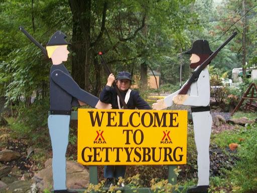 ... but this is still a very nice KOA campground run by super friendly folks that do a great job helping campers and keeping the sites in order. We were "lucky" to get one of the last sites but didn't realize this was part of biker week in Gettysburg and the noise really took away from the enjoyment of the KOA and the battlefield tours. The bikers themselves were nice enough but their loud toys ruin the setting for other folks. Our site (77) was dirt and gravel with quite a few boulders for atmosphere but since it was dry we didn't mind the dust. Our site was close to the neighbors but we had trees and rocks for buffers. The campground must have been here for some time because the tree canopy covered our road and we could watch the lightning bugs in the canopy. The bath/shower facilities were very good and there were places to sit and to hang things in the shower stall.