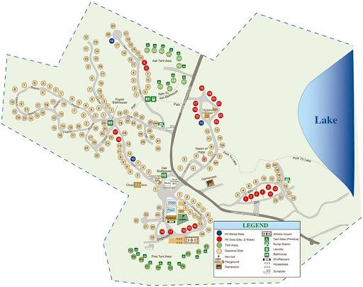 Only 30 sites or so for transits. Very rocky and hilly, no sewers in Elm loop. No soap provided in restrooms, not hygienic imo. They did have a nice Memorial Day service and activities for children. Very Noisy due to interstate a stone's throw from campground.