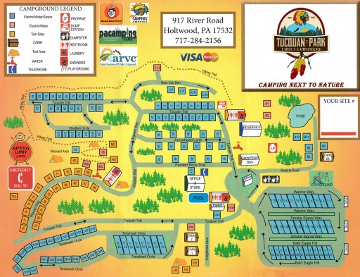 Water, Electric, Fifty Amp, Sewer, Wi-fi, Pets allowed, Tents, Cable TV