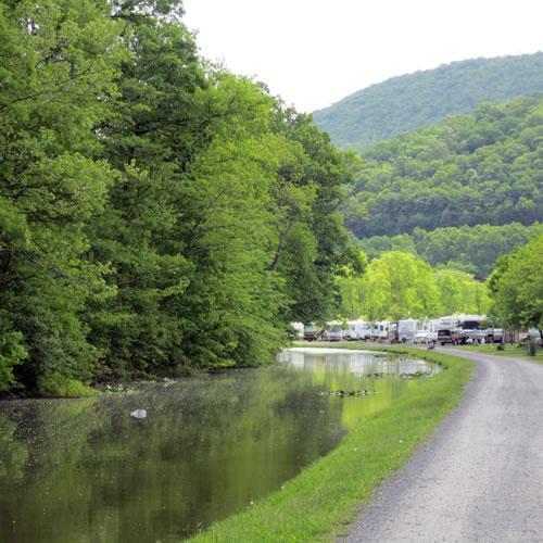 Nice campground by the river. Many seasonals? Bathrooms were kept clean and the campers and staff were friendly. They have worship services on Sunday right on the campground property.