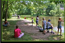 Lake for fishing is hard with children due to water moccasins snakes everywhere