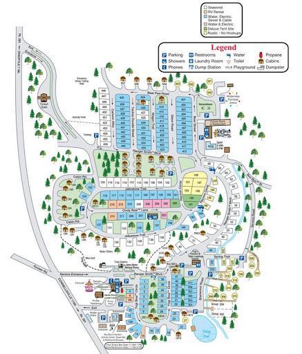 We reserved the premier spot right next to the store/pool/bathhouse. There was no shade and was busy with ppl coming and going. I'd recommend a few rows farther back in premier cause they have some shade via trees. All the other sites are very wooden with tons of trees. Recommend a golf cart rental.