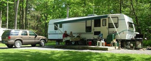 Passport America and Good Sam discounts work here. The campground is great, very well kept up and comfortable while still feeling like camping. The pool seems new The bathhouse is very nice, one quarter for 8 min of water; used my camper bathroom so I can’t speak to water temperature or pressure. The camp store has some food and games as well as ice and firewood. There is a lovely lake/pond that you can fish in or rent a canoe ($5) and paddle around. Area is lovely and lots of hiking options at Rickets Glen state park, as well as a “beach” at a lake where you can swim. The only negative about the campground is that the fire pits don’t have a cooking grill, so if you prefer to cook over a camp fire you’ll need to bring your own equipment. About half the sites are seasonal/permanent and it’s fun to see all their setups.
