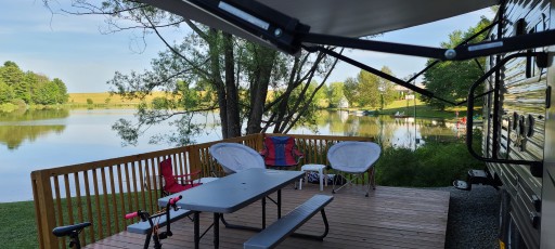 We had just bought our trailer. This is first camp ground we have been too. We have a lake side site it is really peaceful and quite here. The people in charge are very helpful they delivered our golf cart as we did not get it when we got here because it was raining. We hope to get back again probably next season. Really enjoy this camp ground.