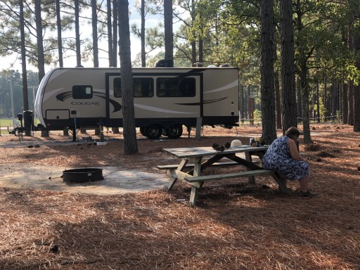 Slots with full utilities, huge shade trees, pine-needle carpet, ponds, meadows, woods, marshes, stables, horse pens, kennels, campers bringing their horses and big, friendly retrievers to be trained... just wow.