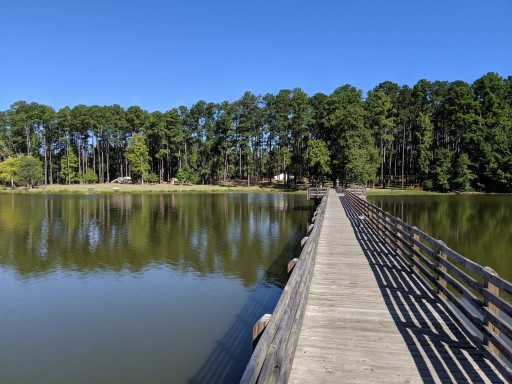 Small but nice campground in a state park. Lake for canoeing and kayaking, very nice bathhouse with A/C, gravel sites are clean and shady, deer in the woods and bald eagle flying over the lake. Picnic area and playground, boat ramp, fishing piers, nature trails, WalMart nearby for the necessities. Not much to do in the area, so chill out, hit the lake and wet a line!