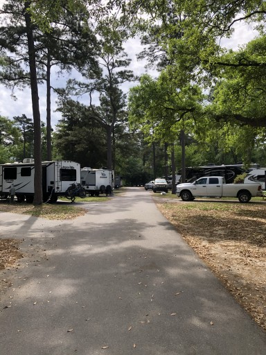 Nice wooded park with big sites for our 36 ft motorhome. It was an easy drive to Charleston for sight seeing. There’s a piggly wiggly just down the street. The entrance is used by both the park and a trailer home so don’t panic as you enter, just turn right and head into the koa. I used the laundry facilities and that was ok. The pool looked nice but I never got in it.