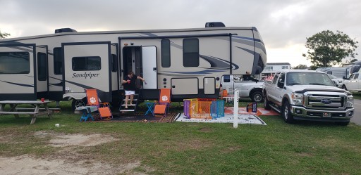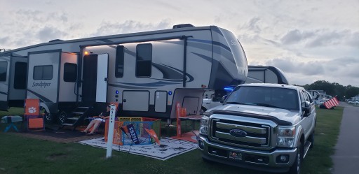 Came for a week. Was raining a bunch and didn’t have the nice site with concrete slab to park in but the site wasn’t too bad. Pretty tight sites but typical for these RV resorts. Ton of activities for the kids and the pools are great. All the kids in the pools were respectful and all played well. Ice cream shop fills up quick but worth it. They have many planned activities and if you are bored then it’s your fault. They have an 11pm quiet hour rule but it is not enforced at all. People are setting fireworks off all over the campground well into the midnight hour. They state that only licensed drivers are to operate the golf carts but teenagers are reckless and inconsiderate driving them. The security is good at keeping the gate covered and locked down but there is no enforcement in the campground even if they are called.
