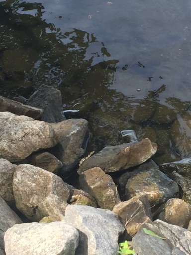 We paddled the lake in our inflatable kayak. Winds were fairly strong but not hard to paddle against.