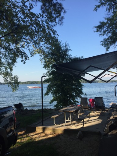 This is a nice campground but sites are small and very close together. No privacy here anywhere. We had a lakefront site with full hookup which we liked but didn’t like having the neighbors so close. Lots of parties going on the weekend.