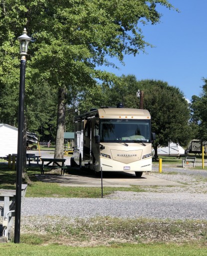 Beautiful setting, convenient from I95. Stopped on way from Virginia to Florida. Arrived after hours, instructions and marked space were ready for us. Level pull through sites, friendly owners & clean facilities. Very reasonably priced.