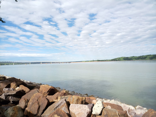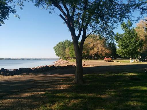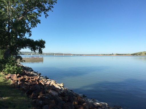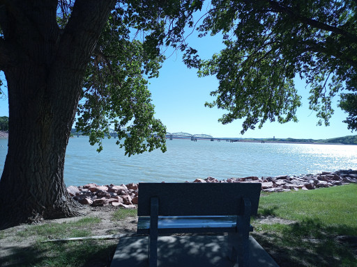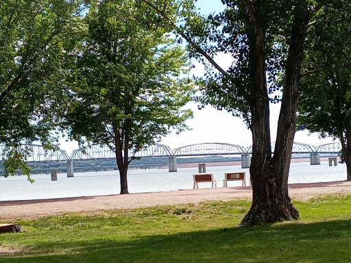 We had reserved this campground for 1 day and ended up staying for 2.It has bike rentals,and a nice paved walk,with views of the Missouri river and the bridge,also a small beach area.It has nice,big shade trees.We had some very strong winds,while we here,but still enjoyed our stay