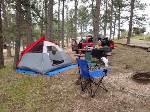 We stayed here for a week and loved it. Perfect location to visit Rushmore, Crazy Horse, Wind and Jewel Cave and Custer State Park. The park sits in a heavily wooded location and you feel like you are in a forest which was beautiful. It’s a hilly park but very manageable. The staff is five star and very helpful and available. They escort you to your site and help you set up. They bring firewood to you if you buy it. Location, sites, staff are all 5 stars. The sites are pretty level and large. We were in the back down the hill and it felt like we had a double lot. So beautiful, wooded and peaceful. Cannot think of any cons other than the steep hills to get to your site but there was charm to all of it. We had some trouble with our Starlink because of all the trees so be careful with the site you choose if you use Starlink. Some sites have better north views for Starlink. I’d stay here again in a heartbeat and this is a solid 5 star park. Book it!!