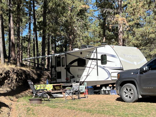 This campground has new owners and they are trying to make improvements to the grounds. The roads around the park are steep and the sites needs some work to level them out. There are only a few of us here right now. I wish the new owners all the best.
