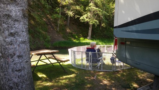 Very nice RV park. Lots of grass, kept very clean, and well maintained. We did catch a couple nice size trout in their pond using their gear. They clean them and fried them with a couple side dishes for an extra $5. It was a great dinner without any mess, just fun and tasty. Very friendly owners and staff. The WiFi went down on our 3rd day and never really came back, but before that it was adequate for emails and texting. No cell service, we have verizon. Our site backed up to the creek nestled in the trees. It was cool and quiet. The sites are a little narrow but still ok. The back yards are large enough. My only wish is they would fence in the dog run to make an actual play area out of it, that would give them a 5 rating in my book.