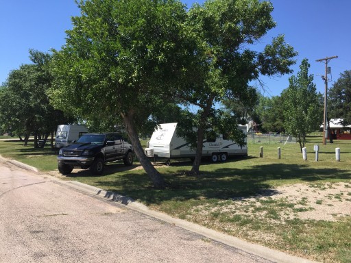 10 sites 30 AMP water connection at some sites and a dump station on way out. Sites on south side much more level than east side. Ten dollars a nite on the honor system. Great stopping over place for a day or three. Only negative is SD hwy 73 from Lemmon southbound is being repaved for 12 mile stretch but we got here and it's all good. Very helpful local people.