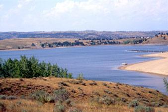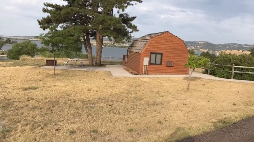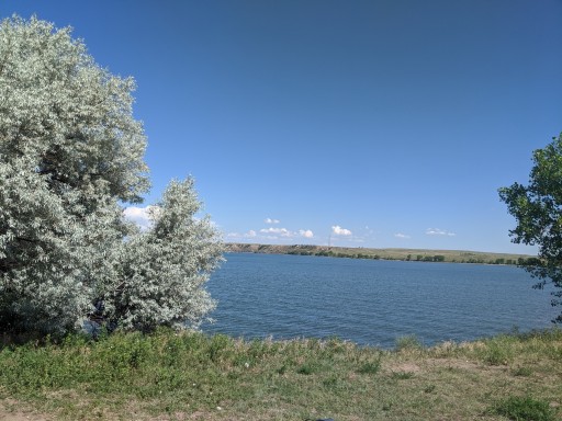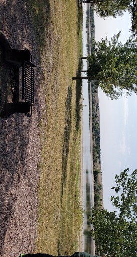 They're about 12 free dispersed sites just past the boat ramp at 43.2987842, -103.4452593. easy water access, fire pit, Pit toilet. No shade except for one spot down by the toilet which is essentially on the water. Some trash from local partiers but not too bad. Pretty flat and not a lot of trees, does not look like the black hills but probably a decent place if you want to drive an hour and a half for day trips.