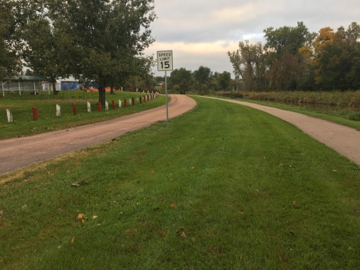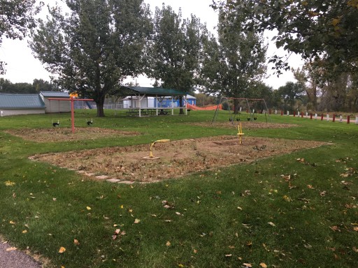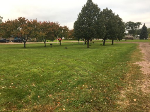 This place is great for an inexpensive overnight stay. We were traveling from MO to WA and needed somewhere to plug in overnight. The grounds are well maintained. Back in sites are grass and look a little soft but the pull through spots are gravel and packed well. I was worried about fitting our travel trailer with the truck and our car all in one spot due to the fact it says max rv length 40 ft. However, the pull through we stayed in is probably closer to 85-100 ft. There is a nice paved walking trail around the park and a playground near the pool. The bathhouse does look older but the rest of the park is nice. I would highly recommend this park to any I-90 travelers looking for a hook up after hours. We came in around 10 pm as other parks were all closed.