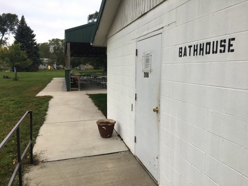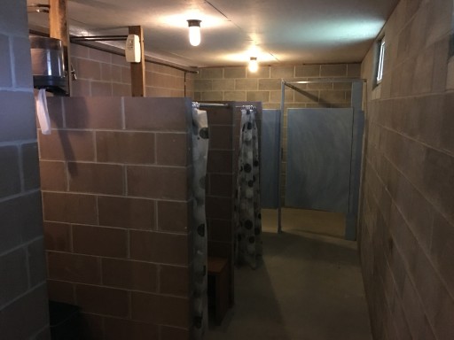 Easy over night stop. Pull through with electric & water & dump station. Bath house needs a little TLC but useable also not clearly divided M&W.