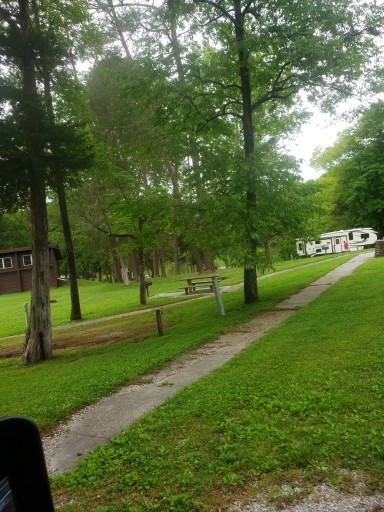 Overall nice campground, although many sites have the fire rings and picnic tables either behind the rig or on the opposite side. We stayed in site 22, and it worked for our 38' 5th wheel. Also beware if you book site 66, it is very narrow with trees on both sides, not enough room to open any slide outs. Most of the sites, at least in A loop seem to be narrow and long and neighboring site within just a few feet. Other than that, the bathhouse was well maintained and clean and there was plenty of area for kids to ride bicycles. Park location was maybe a mile or so from the interstate, however you couldn't hardly hear any traffic at all. There is also a Wal-Mart about 5 mins away for supplies if needed. We stayed June 7-14, 2020