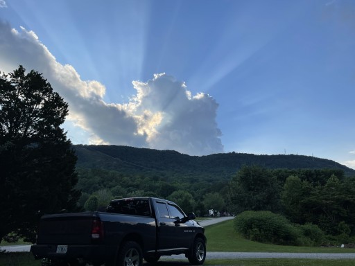 Easy access, escorted to site. Middle area… only view is campers on top of campers. Small narrow sites in pull through. Neighbors too close. Our neighbors fire pit was below our bedroom windows. we could hear everything they were saying due to being so close. Great showers and bathroom. Dog park is just a fenced area. Good other areas to walk the dog though. Staff friendly! They pick up your trash at your site twice a day. Very clean campground! Beautiful mountains..but you can’t see them due to so many campers packed in