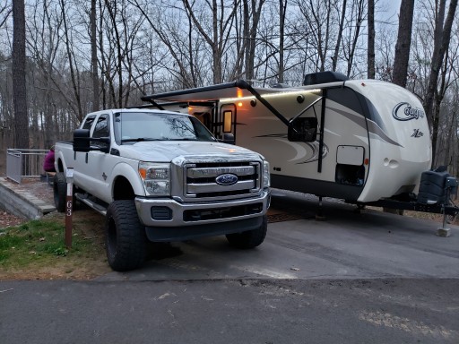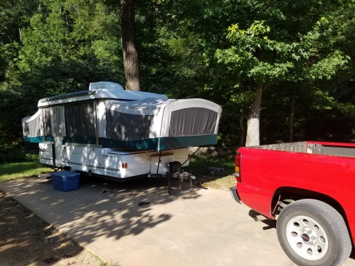 Stayed site #20 (B/I on the creek), short pads with average spacing.utilities opposite each other, an on wrong side. Peaceful an quite. Fairly new and clean bath house, a short walk from camp. Looks of little or to no maintenance. grass needed cutting and trimmed. Fire ring full, concrete pads (ours had chalk graffiti). Oh! Campground #1 has no marked traffic direction, got in a squeeze situation on a one way in/out with a 35 ft rig coming out. Museum closed for COVID-19. Cool bird of prey sanctuary, trails of tears runs length of park, also park has good trails rated easy to moderate. Campground #2 is newer and up alittle higher. Roads need some attention. Staff was friendly, and did honor senior discount on site (no full hook)