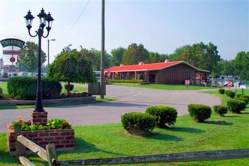 I must have missed the two rivers. Didn't even see one. Didn't like that you have to have an extension for you sewer if you want to use the full hookups. Two camp stores on either side have big displays as well as the camp store. $40.00 and then you get to figure out storage and may never use it again. Bad layout.
