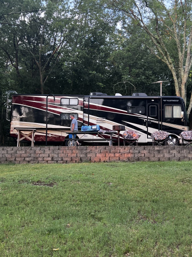 Non-electric site, good shade. Came 1hr prior to check-in, although site was empty were told to go down the road and park in grocery store parking lot for the hour. Asked if we could use dump station to make good use of time before check-in, and was told that we could use dump station after we check-in, not prior. Rules closely followed including gate closes at 10pm.....no one enters or leave til 6am. Generators are fine outside of quiet hours. Check for ticks.