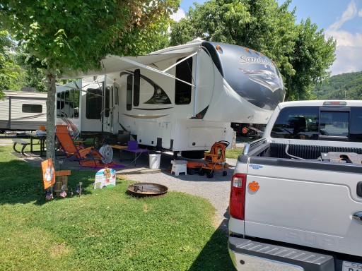 Good location if you want to be close to everything. Spots are a little small and tight but stayed during the off season so wasn’t bad. Stayed in spot #1 which has an overflow sight in front of it. Used it for parking. Was right on the water which also put us close to the Main Street going though Pigeon Forge so could hear all the traffic noise. Nice bathhouse, arcade and store. They also have trolley stops in the park to take you around town.