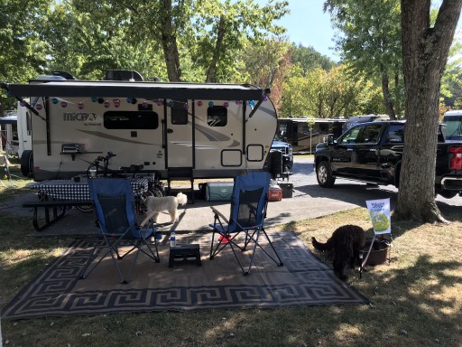 The staff is friendly and extremely helpful! That alone speaks volumes! Nice camp store with just about everything you could need. Close to stores and restaurants. Pool looked nice, but we didn’t use it—no time! Splash pad. Trolley service. Cable TV, but not all channels were clear (scrambled at times) even with a high quality coax. Arcade. Laundry room. Clean bathhouse, plays music inside for a nice touch! The sites are close together, but level with decent-sized concrete patios. We reserved a site on the end of the row, so we had a little more room. Park is well maintained and quiet at night. We will be back next year!