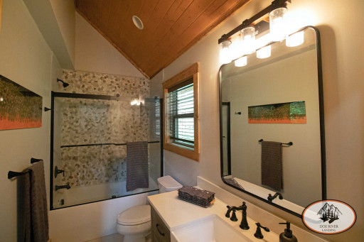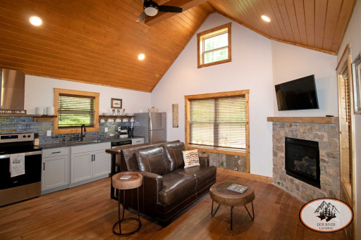 My husband and I stayed in the one bedroom cabin. Very clean and nicely decorated comfortable bed and a full kitchen, TV and gas fireplace.