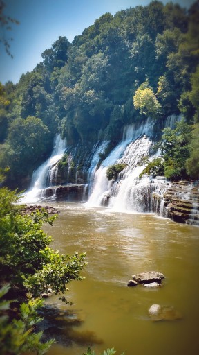 Very nice beautiful park. A lot of nice shade trees. Sites are spacious, concrete or asphalt. Some are inclined so may want to call and ask ahead. Some sites have sewer. Swimming area and boat launch on Caney Fork River . Very scenic swimming area with high cliff on one side. Lots of great trails. Great Falls Dam nearby. Can walk down to river and see several waterfalls. Beautiful!