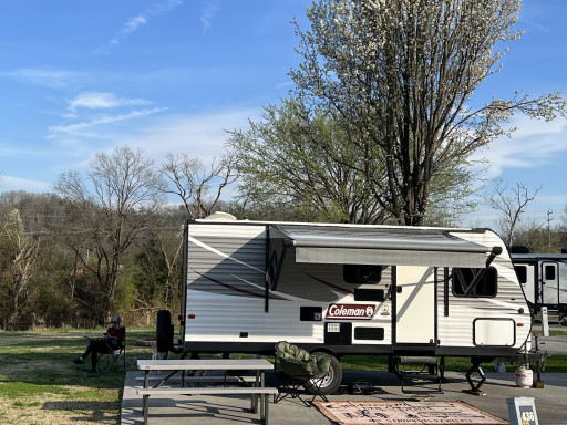 One of our favorite places to camp in the Pigeon Forge area. Pools are great with shady areas to relax at. Bathrooms are always very clean with AC. Sites are level with small trees and grassy area. They do have some skunks that hang out there. Every night we would see a couple around our campsite.