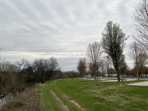 Great campground with a lot of amenities. Dog wash, dog park, strict low speed limit, helpful and warm staff in registration office, some camping supplies (we needed a sewer elbow and they had several), RV wash, fire rings, picnic tables, etc. They’re currently redoing all riverfront lots to make them full concrete pads. I’d like to see a spigot in the dog park area for dog drinking water, and would’ve loved a pad-side grill. Also, the paperwork says no outside firewood and the firewood sold in office was green/didn’t burn. Still 5 stars though.