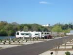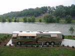 Easy access from highway. Staff pleasant and very helpful. We stayed 3 nights in a pull in site on the river. These sites are reserved for class A motorhomes. Beautiful view. Concrete pad sloped toward river, but we easily leveled with leveling jacks. Utilities are well placed and functioned perfectly. Cable has lots of channels that came in clearly. Wifi was very good when we could get it, but in the evening we couldn't get internet. I definitely would return.